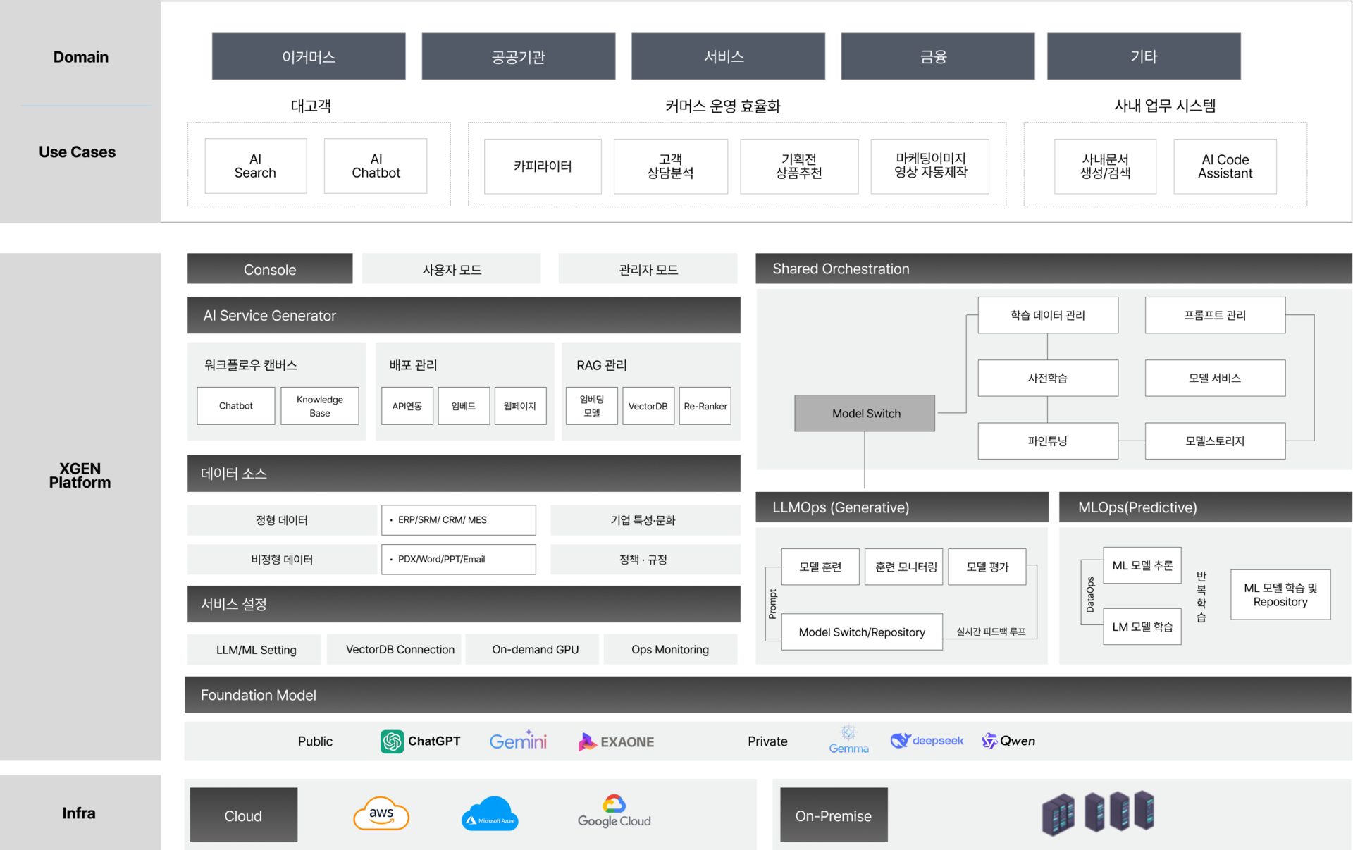 3단계로 설계된 XGEN 아키텍처는 다양한 도메인 환경에 최적의 AI 서비스를 제공합니다